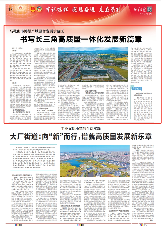 推动高质量经济发展,文化是重要支点。博望拥有丰富的文化资源和深厚的人文底蕴,示范区积极探索人文与经济交融共生,打造人文经济发展的博望样本。